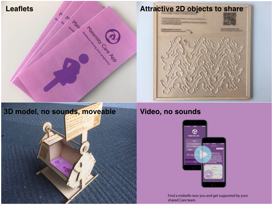 Different tools are designed that included information about pregnancy in the DHS. Flyers, videos, and a tangible information box are created to test which one will trigger women to obtain the proposed information. The interview is transcribed through coding and clustering. From this data, the needs of these women could be analyzed.